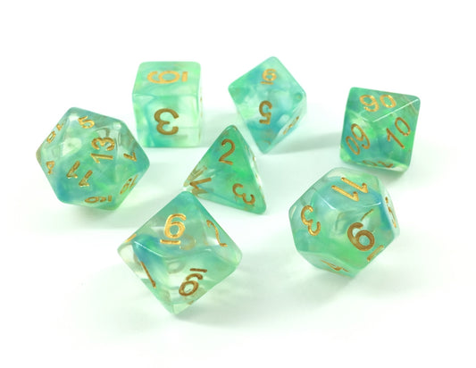 Green Glitter Dice Set - D20 Poly Dice set - gld-d20-gr