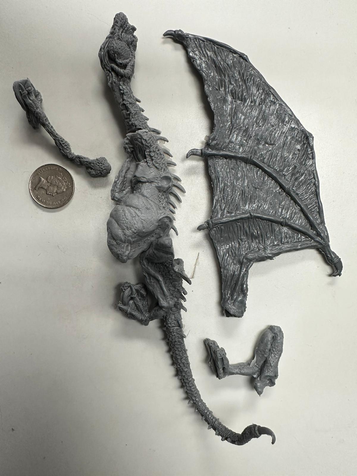 Because wings are optional on the Aedwyrm there are no sockets. Oakbound Stuido recommend filing the joining areas smooth, pinning and applying a small amount of modelling putty to blend.