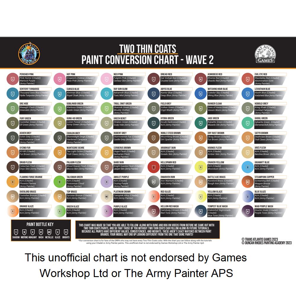 We have included the paint conversion chart provided by Duncan Rhodes Painting Academy for your information.