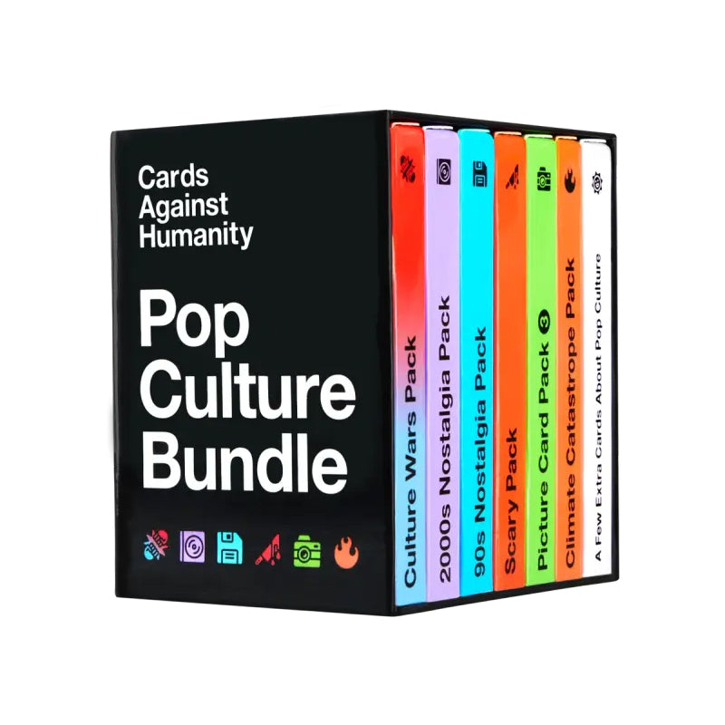 Get ready to laugh your way through the world of pop culture with the Cards Against Humanity Pop Culture Bundle! This bundle includes six themed packs, including the all-new Culture Wars Pack and exclusive pop culture cards like "Getting shot by Alec Baldwin" and "Jeremy Renner's mishap." Don't miss out on these hilarious additions to your game night.