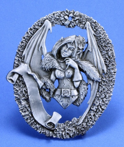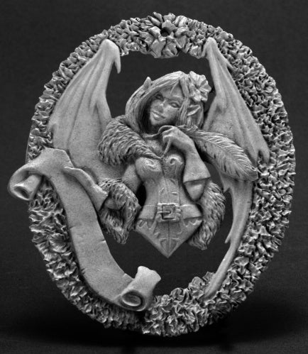 A bas relief figure of Reapers lovable succubus mascot, Sophie, perfect for hanging on the holiday shrubbery of your preferred inclination.