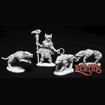 Reaper Miniatures 02079 Komray, Dogs of War sculpted by Bob Ridolfi, a metal miniature of an undead creature and their zombie dogs of war making a great edition to your gaming table and RPG.
