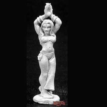 Reaper Miniatures 02749 Jade, Dancing Girl sculpted by Werner Klocke for the dark heaven legends metal miniatures range, a female metal miniature depicting a dancing girl for your gaming table or miniature cabinet.