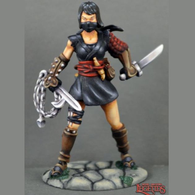 Reaper Miniatures 03812 Kiri, Female Ninja sculpted by Tim Hill for the Dark Heaven Legend range of metal miniatures as a human rogue for your gaming table and hobby needs.