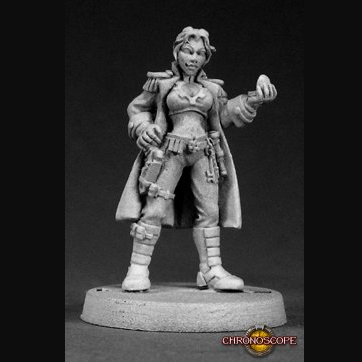 A metal figure 50001 Sascha Dubois, Time Chaser sculpted by Julie Guthrie and Bob Ridolfi by Reaper Miniatures for their Chronoscope range and your tabletop games.