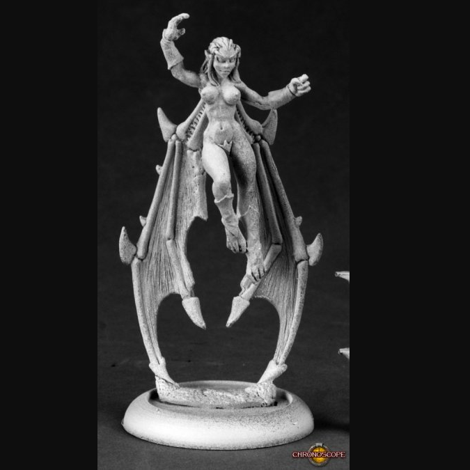 A metal Reaper Miniature 50181: The Harpy, Female Super Villain sculpted by Bob Ridolfi for the Chronoscope range.