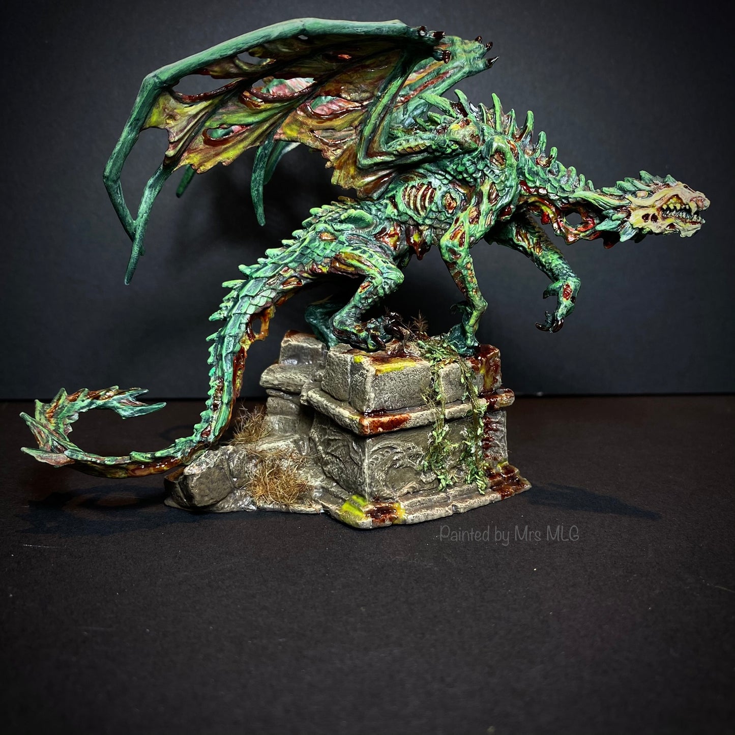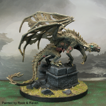 77466 Zombie Dragon by Reaper Miniatures from the Reaper Bone range sculpted by Julie Guthrie. One of Mrs MLGs favourite, a wonderful zombie dragon with holes in its wings and tail draped down for your tabletop games.