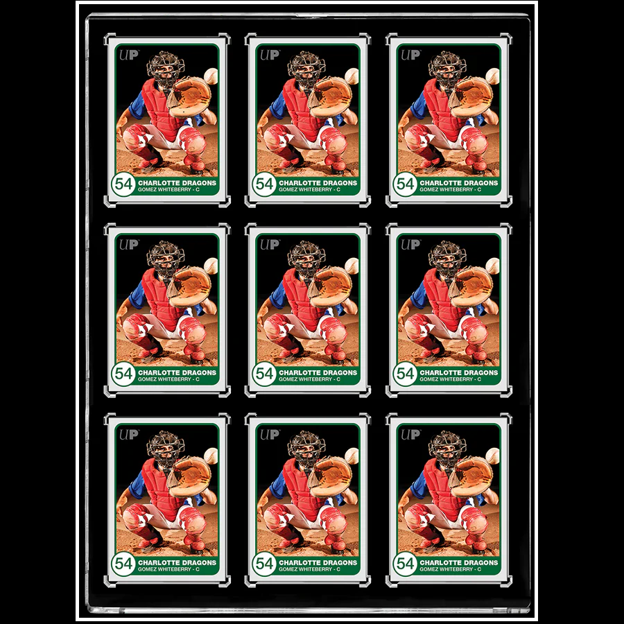 Showcase and protect your collectible cards in style with the 35PT 9-Card Black Border UV ONE-TOUCH Magnetic Holder by Ultra Pro. Designed with a sleek black border to frame your prized cards, this display combines aesthetics with functionality. Its UV-resistant, no-PVC, acid-free design ensures long-lasting protection for super rare and cherished cards.