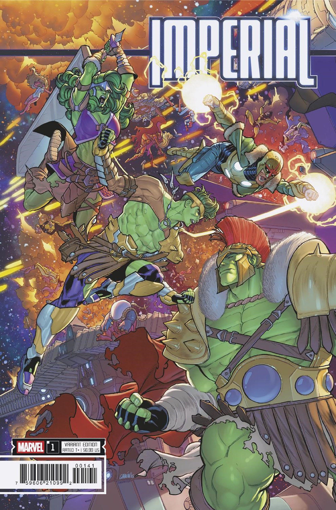 JONATHAN HICKMAN, FEDERICO VICENTINI AND IBAN COELLO TAKE ON THE UNIVERSE! A sweeping Marvel cosmic event! Imperial is a story of intrigue, mysteries and war, which takes place against the backdrop of the formation of new galactic order in the Marvel Universe. Featuring HULKS, BLACK PANTHERS, NOVAS, GUARDIANS and COSMIC KINGS and QUEENS. It's the must-read book of the summer!