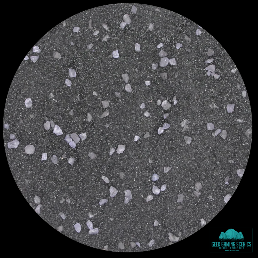 Base Ready Grimdark Tomb World Violet by Geek Gaming Scenics with a mix of sands, gravels, aggregates and Violet crystals great for wargames such as Necron temples, aliens worlds and eerie Halloween scenery.