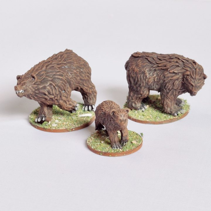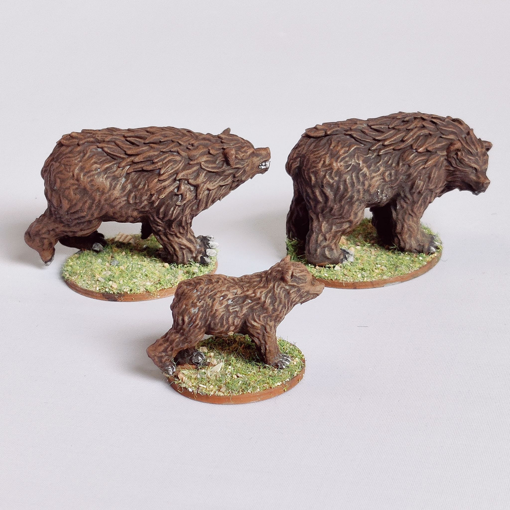 Bears by Iron Gate Scenery printed in resin for 32mm scale with two adult bears and one cub for your RPGs, tabletop games, forest setting and more.