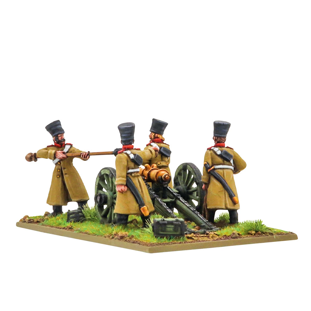 This pack contains one 6-pdr Cossack artillery piece with four crew figures, cast in metal, ready for your Black Powder wargames.