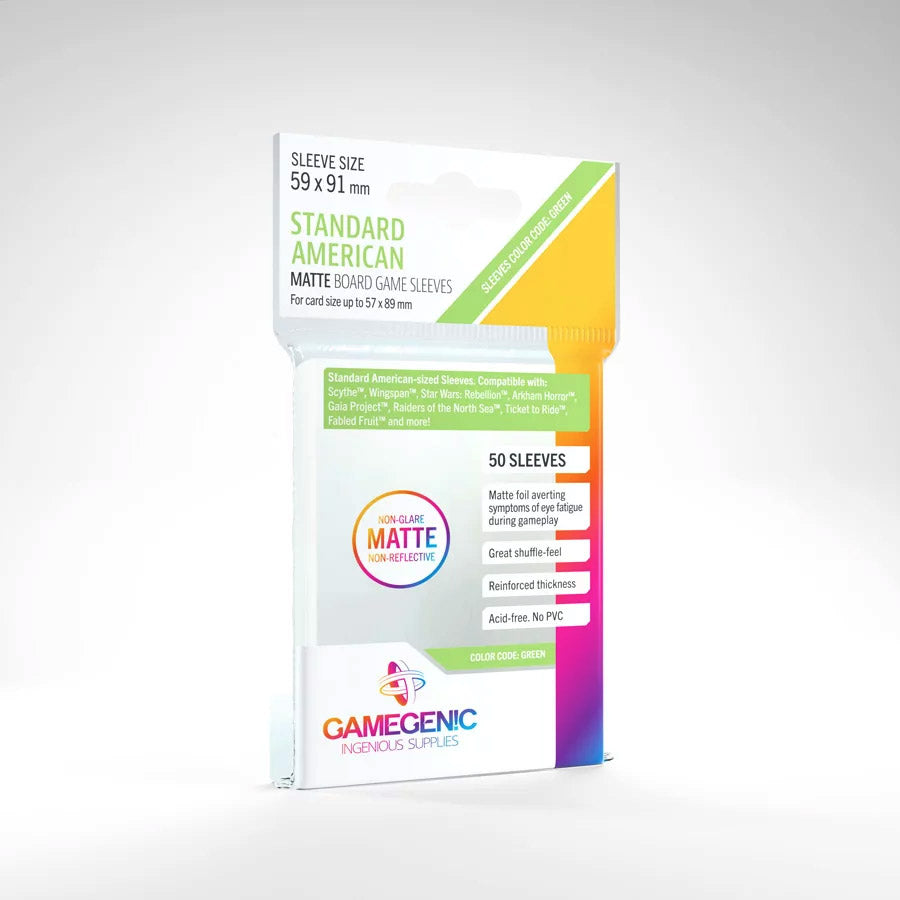 Protect your standard sized Board Game Cards with a set of Matt finish card sleeves from Gamegenic's board Gaming Range. compatible with Scythe, Star Wars: Rebellion, Arkham Horror, Gaia Project, Raiders of the North Sea, Ticket to Ride, Fabled Fruit and Many More.