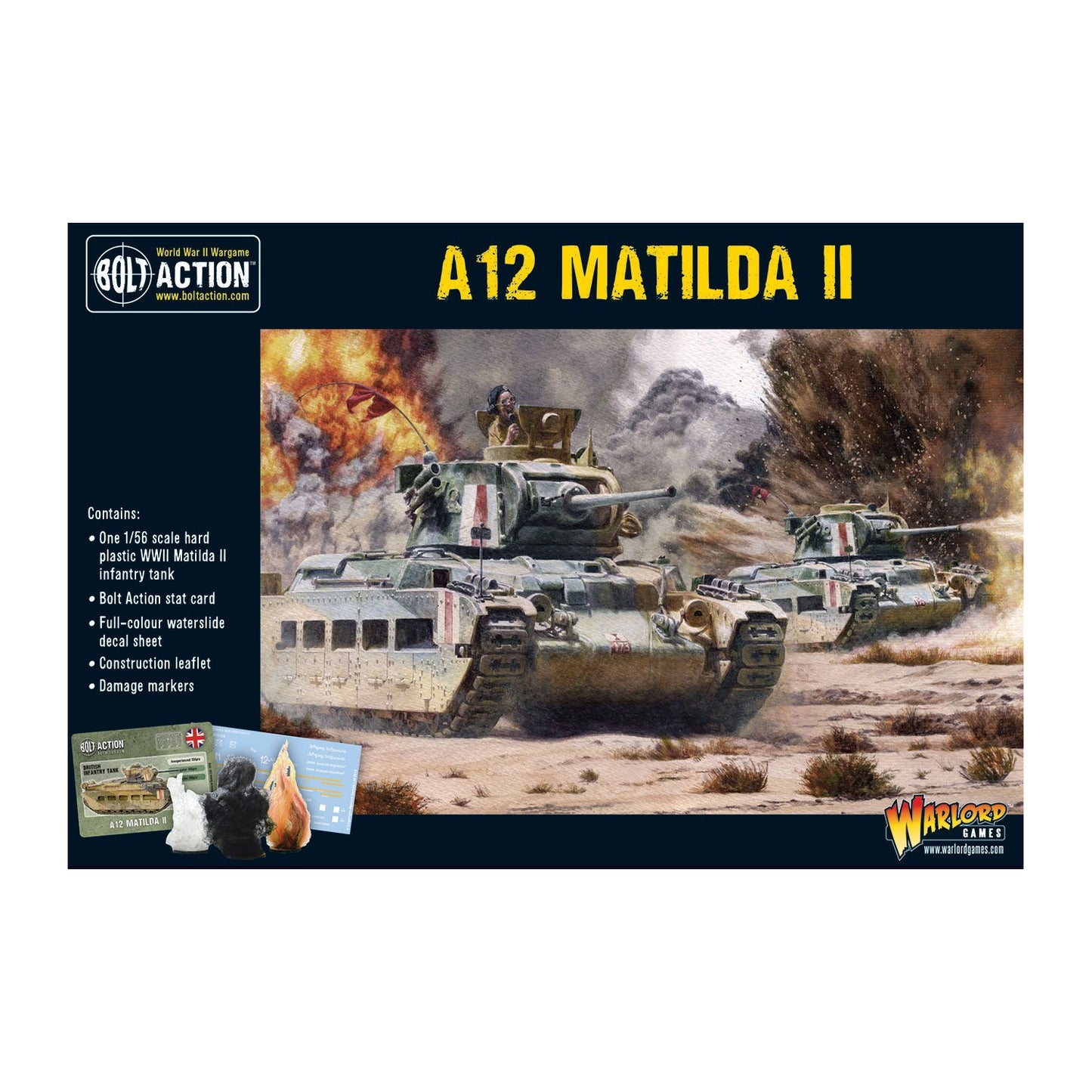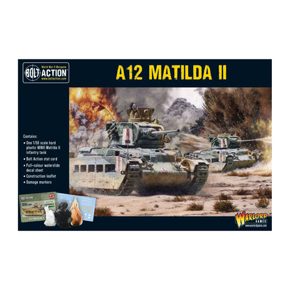 Suitable for both Soviet Union Armies and British this multi part plastic kit contains one 1:56 scale hard plastic WWII Matilda II Infantry Tank, Bolt Action Stat Card, Full Colour Waterslide Decal Sheet, Construction Leaflet & Damage Markers.