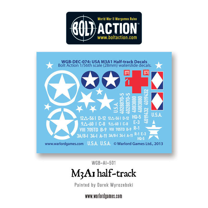 They had a crew of three men and could carry ten fully equipped troops. There were many variations on the chassis including tank destroyers, mortar carriers and ambulances, but most frequent by far were the M3A1 with its armament of a heavy .50 cal heavy machine gun and two or more .30 cal machine guns.