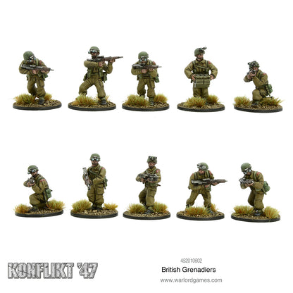 This boxed set contains 10 plastic and metal British Grenadier miniatures designed for the Konflikt 47 Tabletop Wargame.