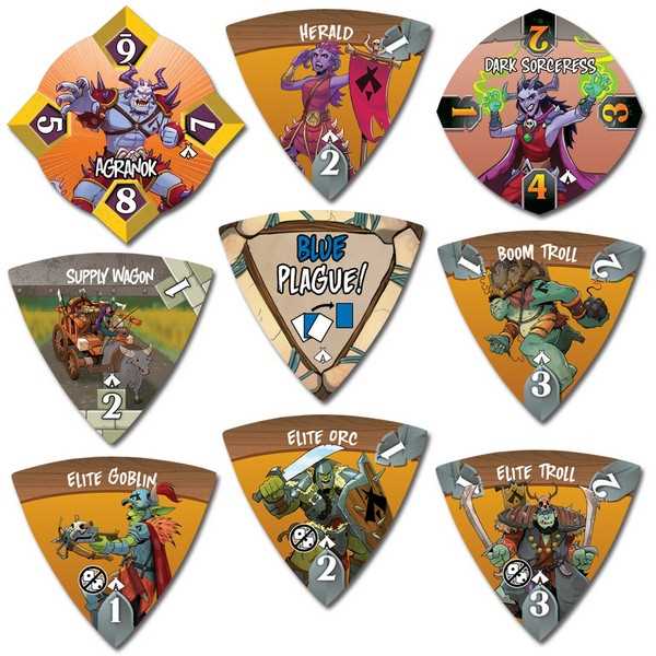 You get more reinforcements with the Cavalier, Boiling Oil, and Support Tokens, such as the Supply Wagon. Play them wisely and you could save the Castle. But Agranok and his team have many tricks and can overpower you if you don’t stay alert!