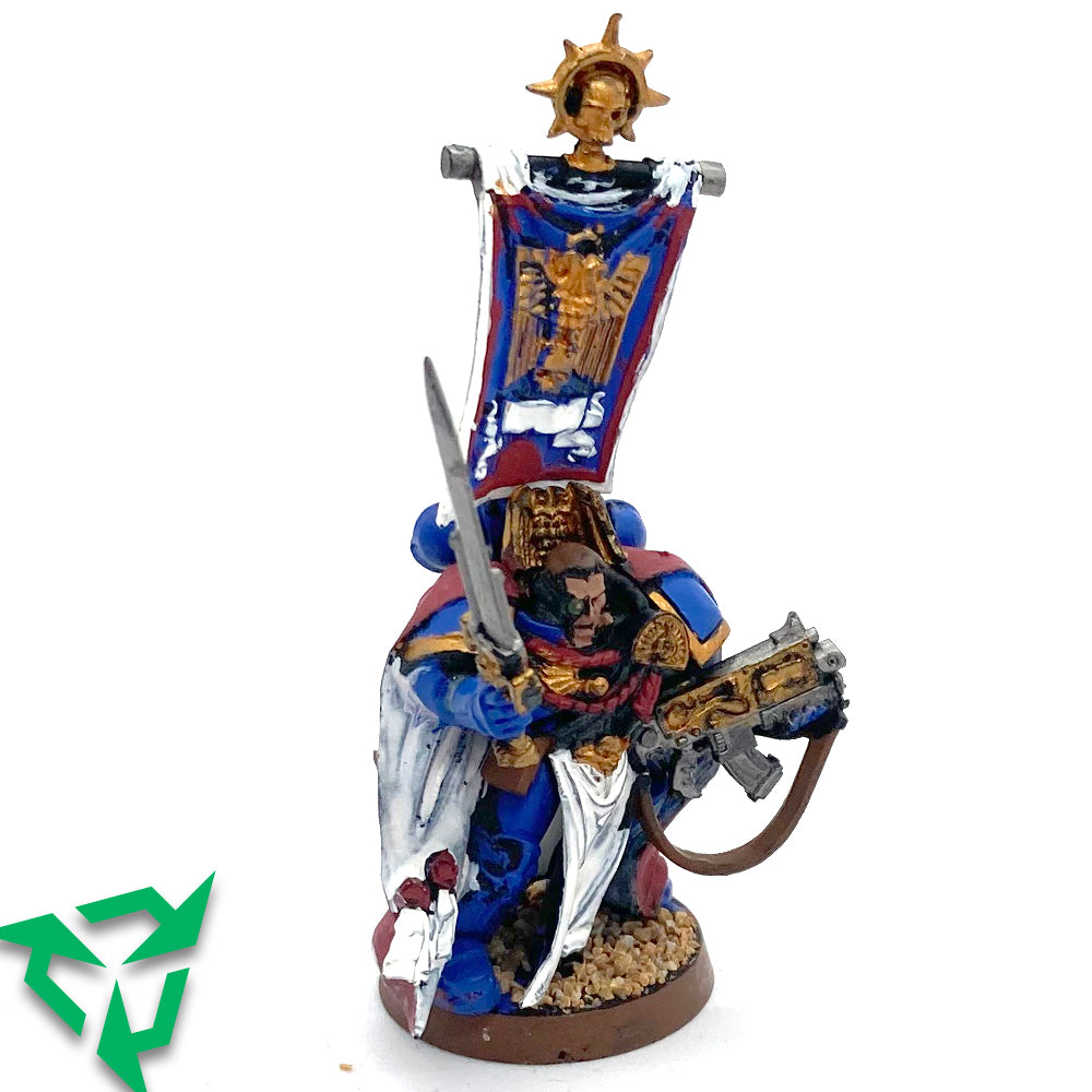 Pick up this classic Firstborn Space Marine Captain miniature for your Warhammer 40,000 collection. This preloved Trade-In mini is in good condition, assembled, based and roughly painted in Ultramarines colours.