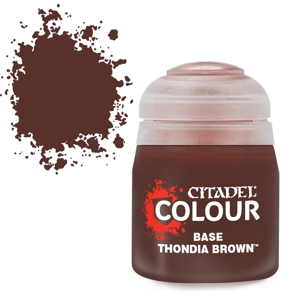 Citadel Paints' Throndia Brown Base Coat is a muted brown colour designed to offer a versatile mid tone for painting natural brown surfaces such as furs and wood.