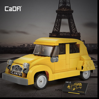 This Cada bricks Citroen 2CV building bricks kit with 298 pieces. A building brick kit so you can build a yellow 2CV famous retro car that is admired by many making a great gift, kit for beginners and building brick enthusiasts alike.