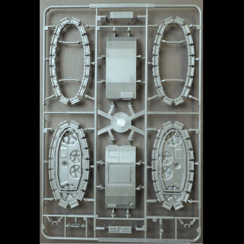 This hard plastic box set includes two sprue frames with all parts needed to build one Chyweethl Tractor and its crew. The Chyweethl’s limited gun traverse requires the driver, commander, and gunner to work in perfect coordination. Rugged off-road performance is impressive, though paved roads can damage the pedrails, making long redeployments a logistical challenge.
