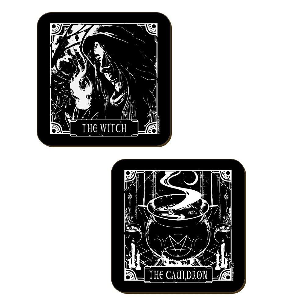 Deadly Tarot The Witch, The Cauldron, The Familiar & The Faerie 4 Piece Coaster Set