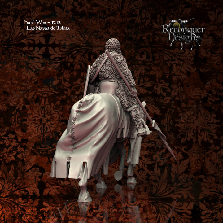 Exhausted Knight by Iron Gate Scenery. A 28mm scale printed resin miniature consisting of one exhausted knight, one horse, one lance and one kite shield representing a knight returning from battle looking tired riding his horse, full of character for your wargames, tabletop games, RPGs and more.