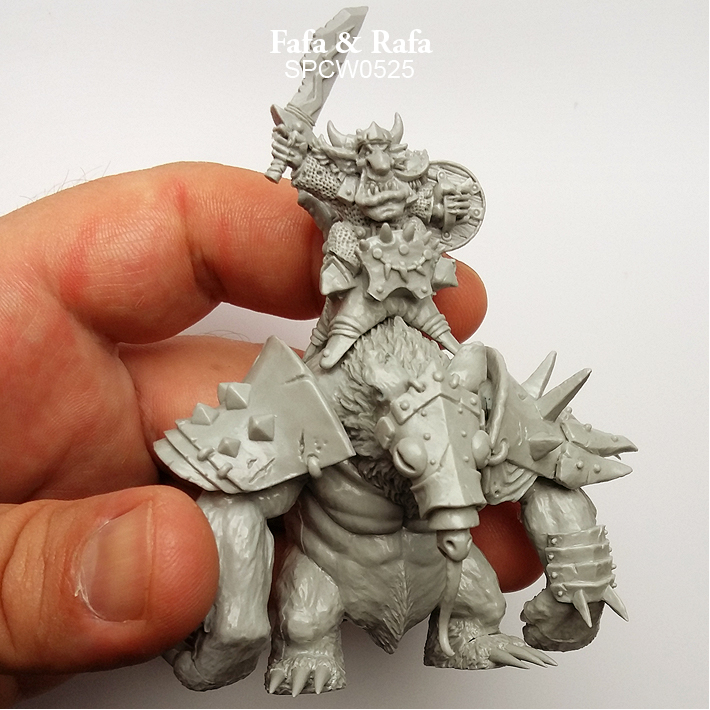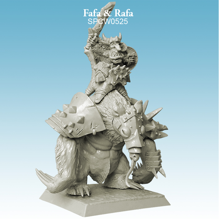 We bet you didn't know you needed a Goblin riding a Giant Anteater until now. Fafa & Rafa by Spellcrow is a pack containing an armoured giant anteater and its sword and shield wielding Goblin rider for your tabletop games or RPG.