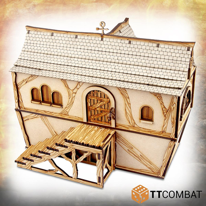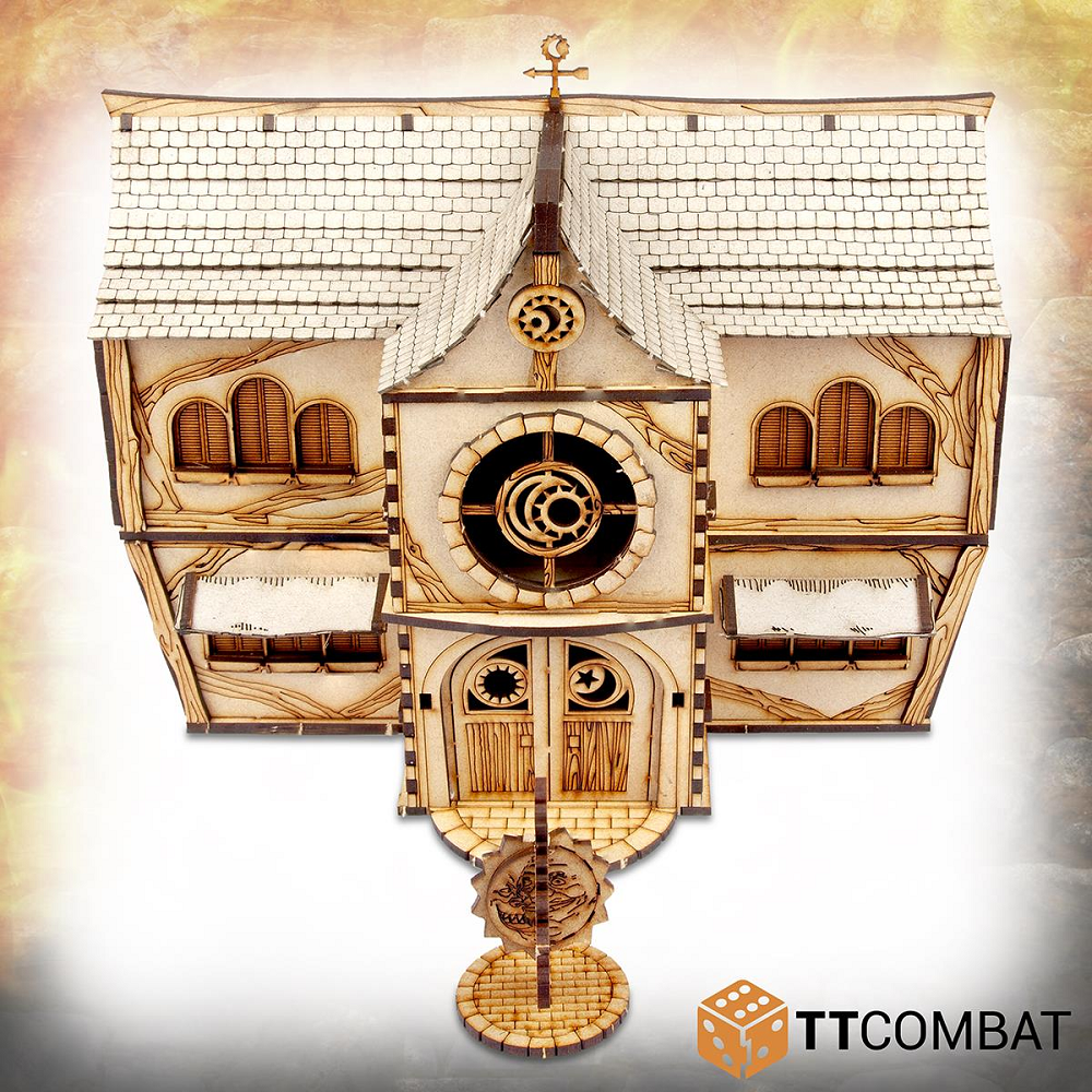 A fantastic townhouse from TT Combat. This MDF kit lets you build the Fancy Hat's Townhouse (so named as the resident of the house loves fancy hats), this elaborate building with its removable tiled look roof, round and arched windows and back steps will make a great edition to your gaming table, RPG setting or diorama.