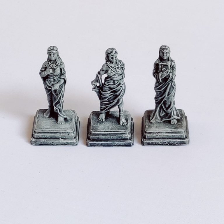 A pack of three Female Statues from Iron Gate Scenery printed in resin in 28mm scale making a great edition for your tabletop games, RPGs, roman settings, dungeon scenery and other hobby needs.