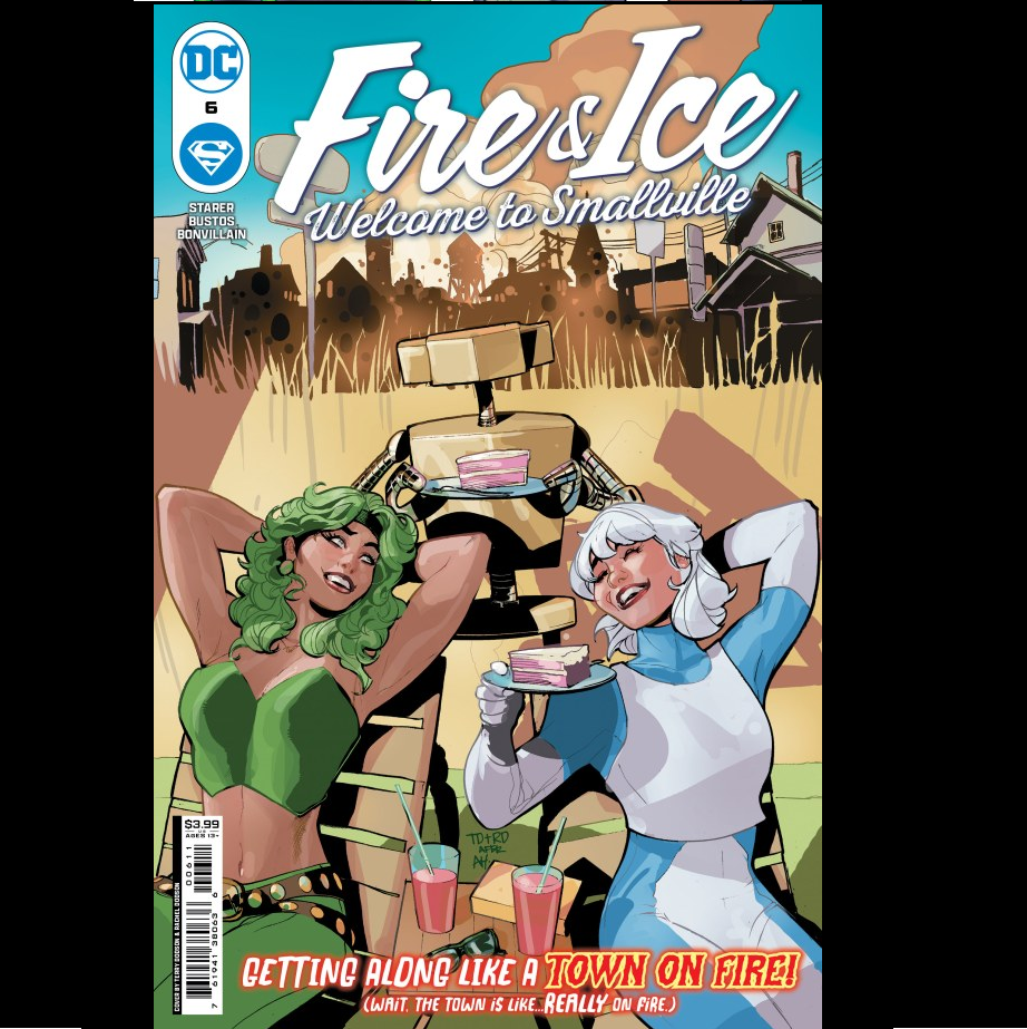 Fire & Ice: Welcome to Smallville #6 from DC written by Joanne Starer with art by Natacha Bustos and variant cover A. Fire and Ice's pasts have come back to bite them (literally!) and the fate of Smallville itself hangs in the balance! Will the power of their friendship and superheroic prowess be enough to rally locals and villains alike in an effort to save the Superman's hometown? Or are there some messes that are simply too disastrous to ever clean up?
