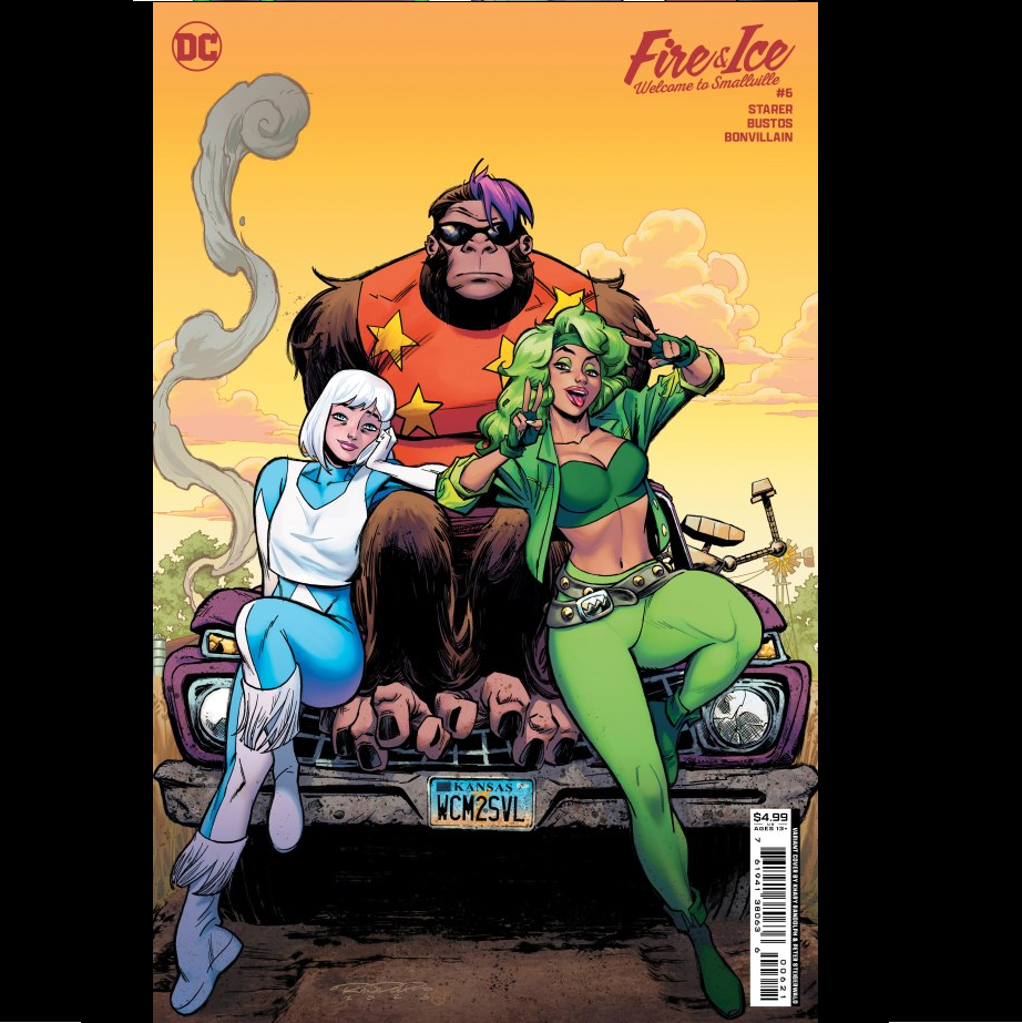 Fire & Ice: Welcome to Smallville #6 from DC written by Joanne Starer with art by Natacha Bustos and variant cover B. Fire and Ice's pasts have come back to bite them (literally!) and the fate of Smallville itself hangs in the balance! Will the power of their friendship and superheroic prowess be enough to rally locals and villains alike in an effort to save the Superman's hometown? Or are there some messes that are simply too disastrous to ever clean up?
