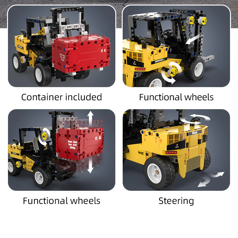 This Cada bricks Forklift building bricks kit with 388 pieces. A building brick kit enabling you can build your own forklift for play or display making a great gift, kit for beginners and building brick enthusiasts alike.