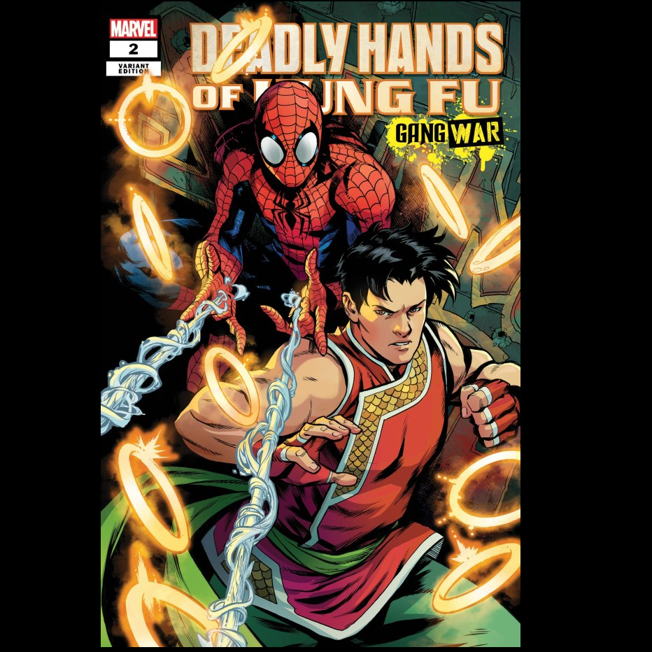 Gang War Deadly Hands of Kung Fu #2 from Marvel Comics written by Greg Pak with art by Caio Majado. Shang-Chi’s greatest weapons are lost to him and Chinatown will burn if the Master of Kung Fu doesn’t win the war. Can Shang-Chi defeat his rivals and protect Chinatown without sacrificing his principles or will Spider Man and his allies bring him down first?