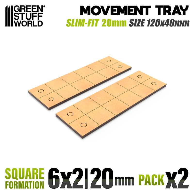 20mm Square 6x2 Slimfit Movement Tray - Green Stuff World