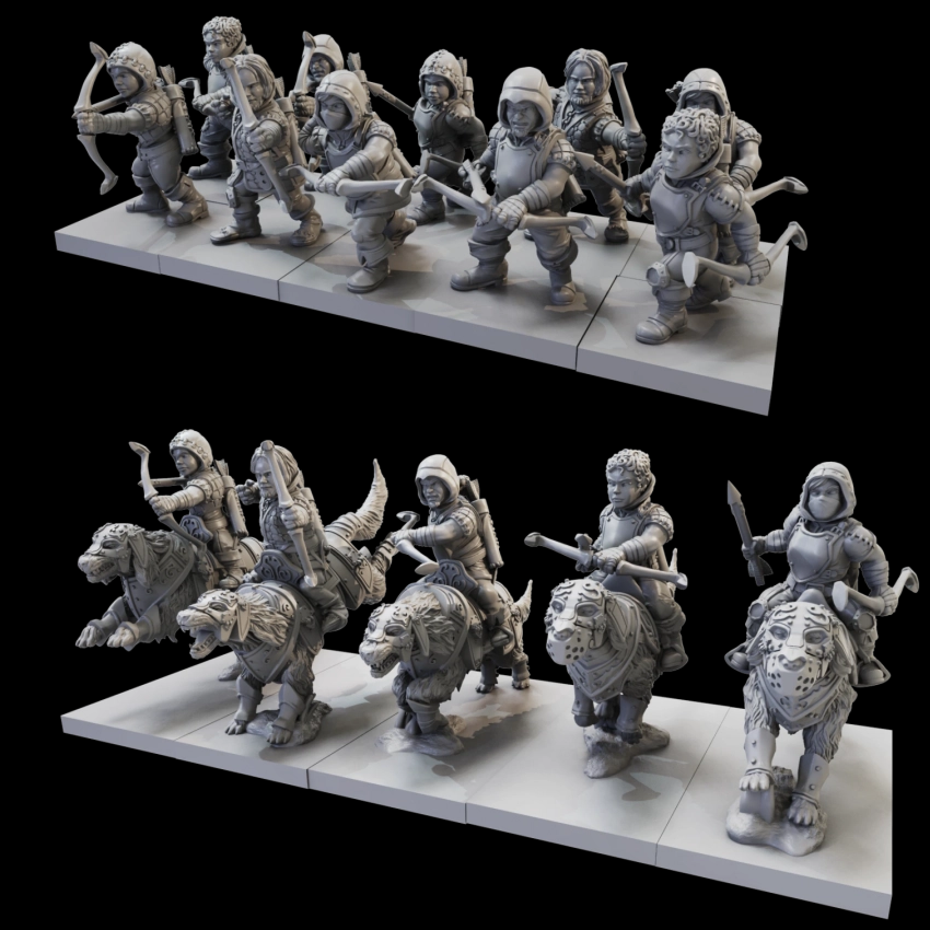 Halfling Poachers Battlegroup by Mantic Games for your Kings of War tabletop wargames. A great set of scouting and skirmishing, mounted and unmounted miniatures for your battlefield.