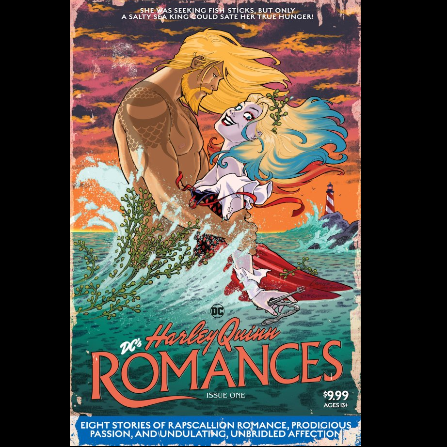 Harley Quinn Romances #1 from DC comics. A selection of eight stories of rapscallion romance, prodigious passion, and undulating, unbridled affection. Tension builds as Apollo and Midnighter are captured by an unknown alien species who are determined to learn the secrets of their supersoldier success. Harley Quinn gets caught in a scintillating fantasy.