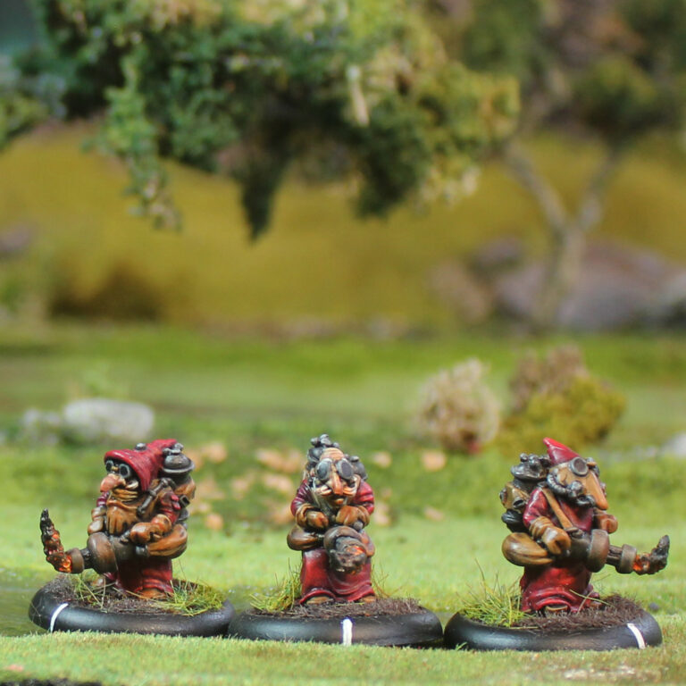 Each hand-sculpted figure by Geoff Solomon-Sims captures the distinctive character of the gnomes of Talamhlar — determined, inventive, and slightly unhinged. These dynamic sculpts feature intricate detailing, perfect for painters who enjoy bringing fiery effects and steampunk weaponry to life.