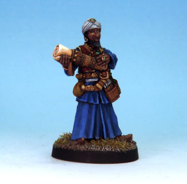 This sculpt depicts an illusionist removing a rolled up scroll from its container. Ideal for hobbyists, painters, and collectors looking to expand their miniature collections with a dynamic spellcaster.