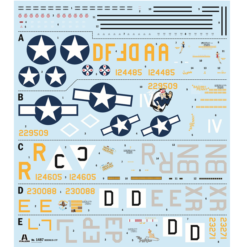 Build one of the most iconic American bombers of World War II with the Italeri B-17F Flying Fortress 1:72 scale model kit (kit number 1487). This highly detailed plastic model recreates the legendary Boeing B-17F Flying Fortress, the four-engine heavy bomber flown extensively by the United States Army Air Forces during the Second World War.