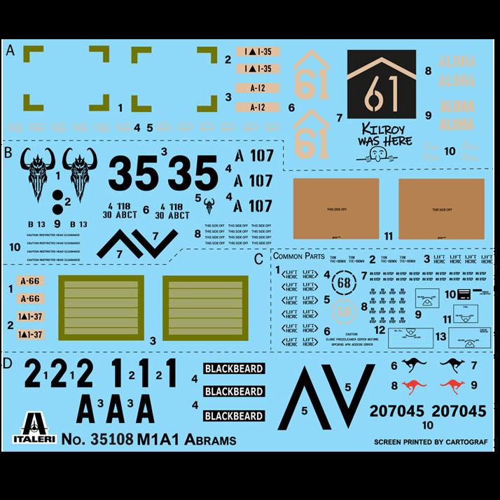 Introducing the Italeri M1A1 Abrams, a highly detailed 1:35 scale plastic model kit (kit number 35108) that is perfect for military model enthusiasts and collectors. This impressive model, with a completed size of approximately 27.9cm, is part of a new collaboration with the popular video game War Thunder, making it a must-have for gamers and model builders alike.