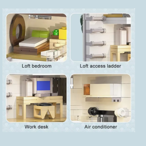 The CaDA Japanese Steamed Bun Shop captures the essence of a bustling Japanese street food store. With 1,108 pieces, this detailed model features an open-back design for easy access to the interior, allowing builders to showcase the shop’s cosy store and upstairs living space. The included USB-powered LED lighting adds warmth and ambience, making it a standout display piece.