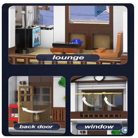 Step into the charm of late-night Japan with this detailed Japanese Style Canteen brick set. Featuring noren curtains, retro stone lamps, and an inviting wooden sliding door, the canteen captures the cosy atmosphere of a traditional eatery. Inside, the open kitchen has pieces representing cooking equipment, while the second floor recreates the owner’s neatly furnished living space. Opening doors and windows add extra playability, while the included LED lighting makes this a stunning display piece.