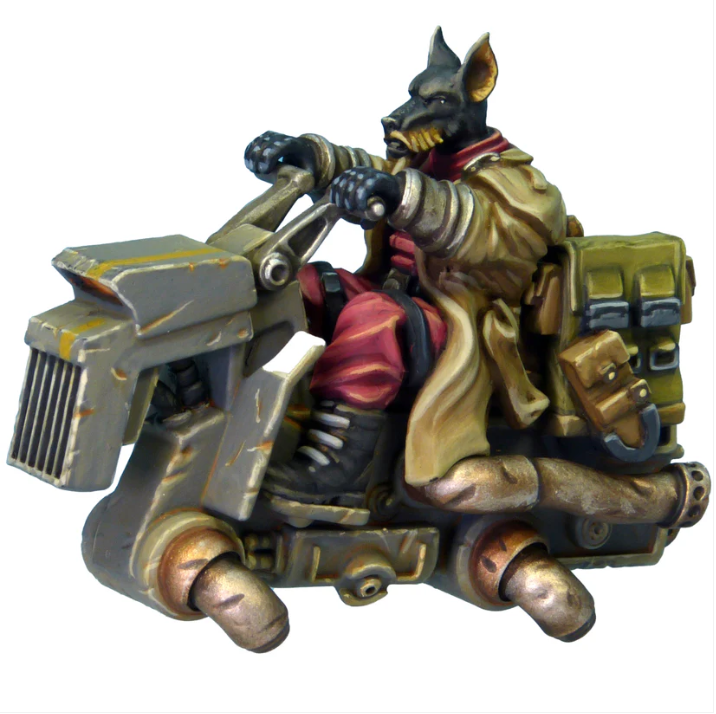 The Jet Bike 2 by Crooked Dice is an imaginative resin tabletop miniature perfect for sci-fi fans. Featuring a dog character dressed in a long coat riding what could been seen as a uniquely designed dog-shaped jet bike with cargo in the back, this model is sure to add a touch of whimsy and adventure to your gaming sessions. Provided unpainted and requiring assembly, it offers gamers the chance to personalise their miniature to match their vision.