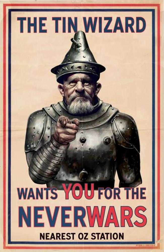 Dorothy reunites with the Scarecrow at the Tin Man's tomb, only to discover that everything in Oz is not as it seems. The Wizard, now donning the armor of the supposedly deceased Tin Man, claims the Lion murdered their friend-but a darker truth lurks beneath. Meanwhile, Peter Pan and Hook form an uneasy alliance aboard the Jolly Roger, encountering Tiger Lily and her flying shark canoe warriors as they search for the kidnapped Tinkerbell. As Georgie escapes the Red Queen's dungeon with help from a surprisingly sane Mad Hatter, the true nature of the Jabberwock is revealed-a shapeshifting entity with the power to corrupt the purest hearts. When Dorothy confronts the Lion in the Wicked Witch's tower, she discovers the Beast has manipulated them all, turning allies against each other. The issue culminates in a shocking transformation as the Jabberwock uses his golden crown to corrupt Dorothy herself, transforming the girl from Kansas into the Wicked Witch of the West, setting the stage for an epic confrontation that will determine the fate of the NeverWorld.