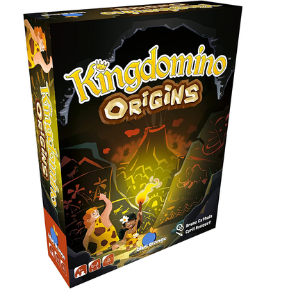 Kingdomino Origins is a stand alone game in the Kingdomino universe where you build your tribe to rule over the kingdoms, gather resources, recruit cavemen and expand your territory.