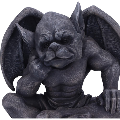 Laverne grotesque figurine to protect you from evil spirits, a contemplative looking character with wings, sitting on its bottom with ankles crossed and its elbow on its knee, hand painted in a grey scale making a great gift or edition to your own gothic collection.