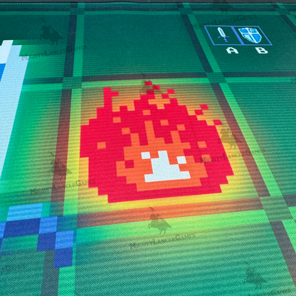 Step back into the golden era of 8-bit gaming with the Legendary Hero playmat from 1UP Dice. Designed to evoke the charm of classic 80s computer games, this premium playmat features vibrant pixel art of a hero’s sword surrounded by flames, accompanied by iconic retro game elements like a health bar and button prompts. Whether you're battling in your favorite card game, exploring an RPG, or showcasing your love for nostalgic gaming, this playmat is both functional and uniquely stylish.