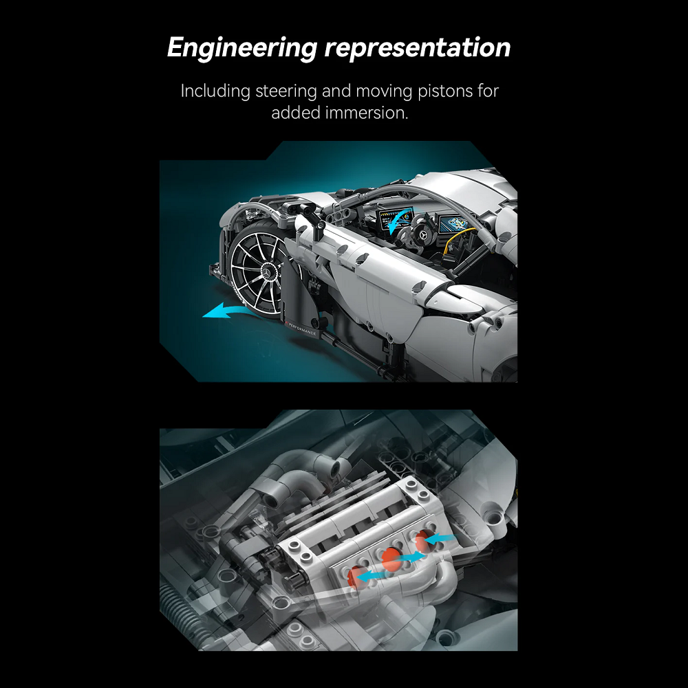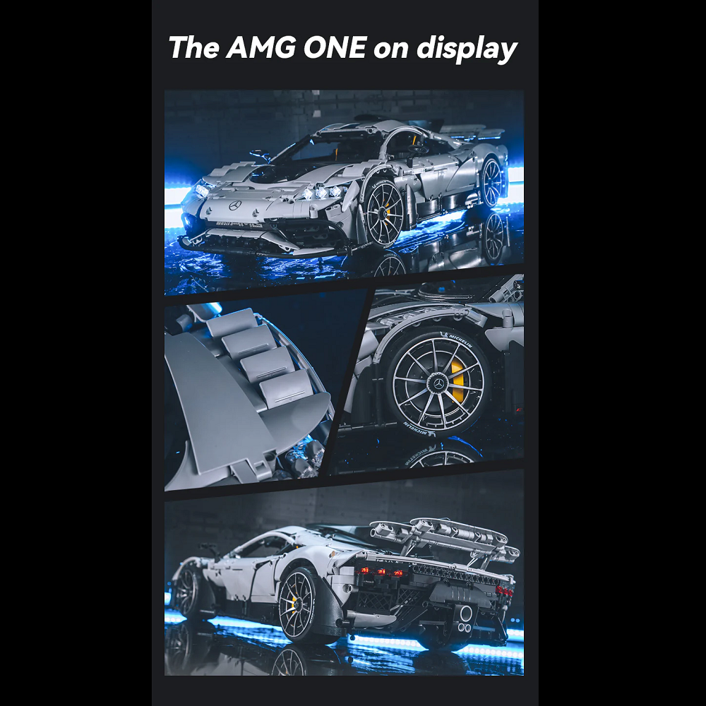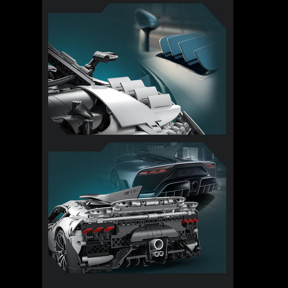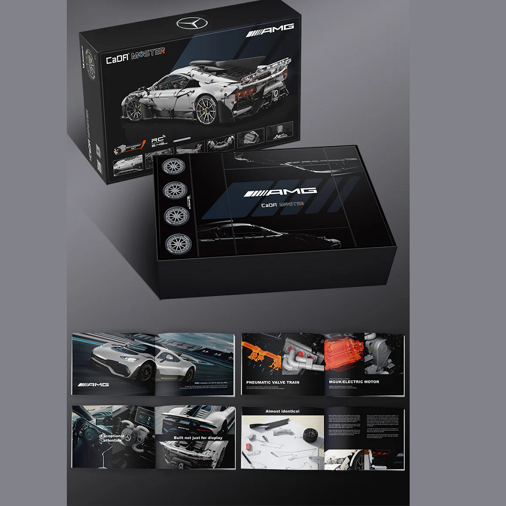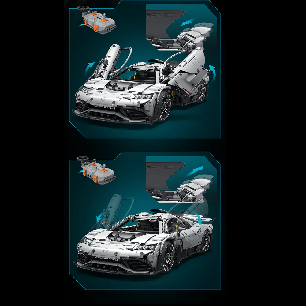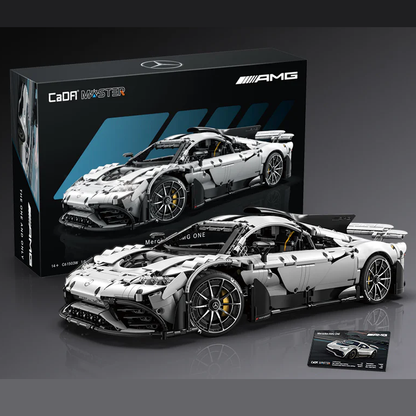 A Cada bricks Mercedes AMG One building bricks kit with 3295 pieces. A high difficulty building brick kit enabling you to build your own radio controlled sports car with remote control butterfly wing door opening and closing as well as tail wing lifting, steering, illuminating lights and great play or display possibilities.