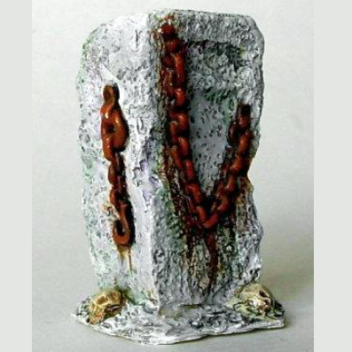 Monolith Set by Crooked Dice, three resin miniature pillars being approximately 5cm tall and decorated with skulls, chains and even a weird tentacle creature making a great edition to your RPG dungeon, cultists diorama and tabletop game scenery.